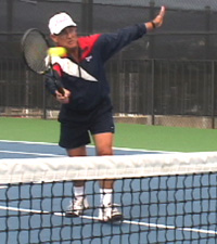 BEGINNERS-#3 FREE VIDEO LESSON- Hitting the forehand - View on You Tube - The forehand in tennis is the first basic stroke most people learn because it is the easiest, and it uses the strongest side of your body to hit the ball. There is a correct way to start out and a million OTHER waysto do it and still hit the ball back over the net, but using the simplest compact stroke (as illustrated here) will get you the quickest most positive resultspossible. People watch tennis on TV and try to copy the big hitters and tennis stars without first learning the basic elements of the stroke, and wonder why this game is so tough to learn. Start out with a simple compact stroke as illustrated here and you'll be hitting the ball, playing games a lot sooner. And the best advice of all: TAKE A LESSON from a good instructor, it's worth the money.